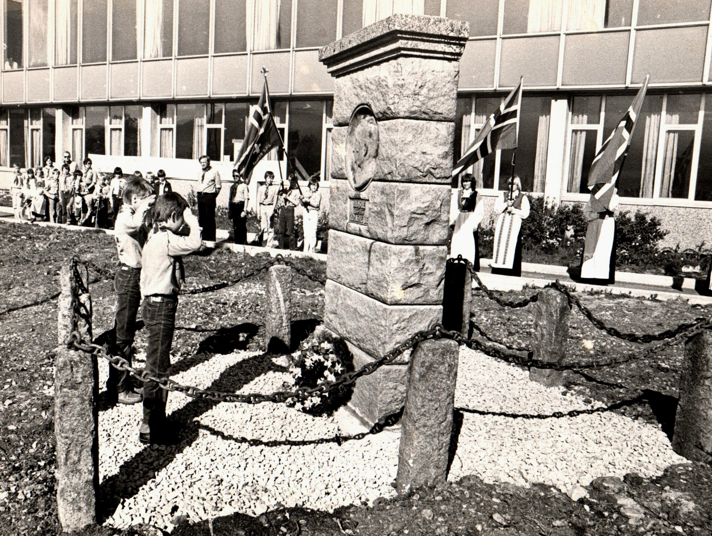 Det er mangt ein kjem over når ein ryddar i gamle arkiv, og i skuffer og skap. Dette biletet er eit døme på det. Det viser speidarar på Husnes, som la på krans på støtta over diktaren Jonas Lie. I mange år var dette ein tradisjon om morgonen på 17. mai.