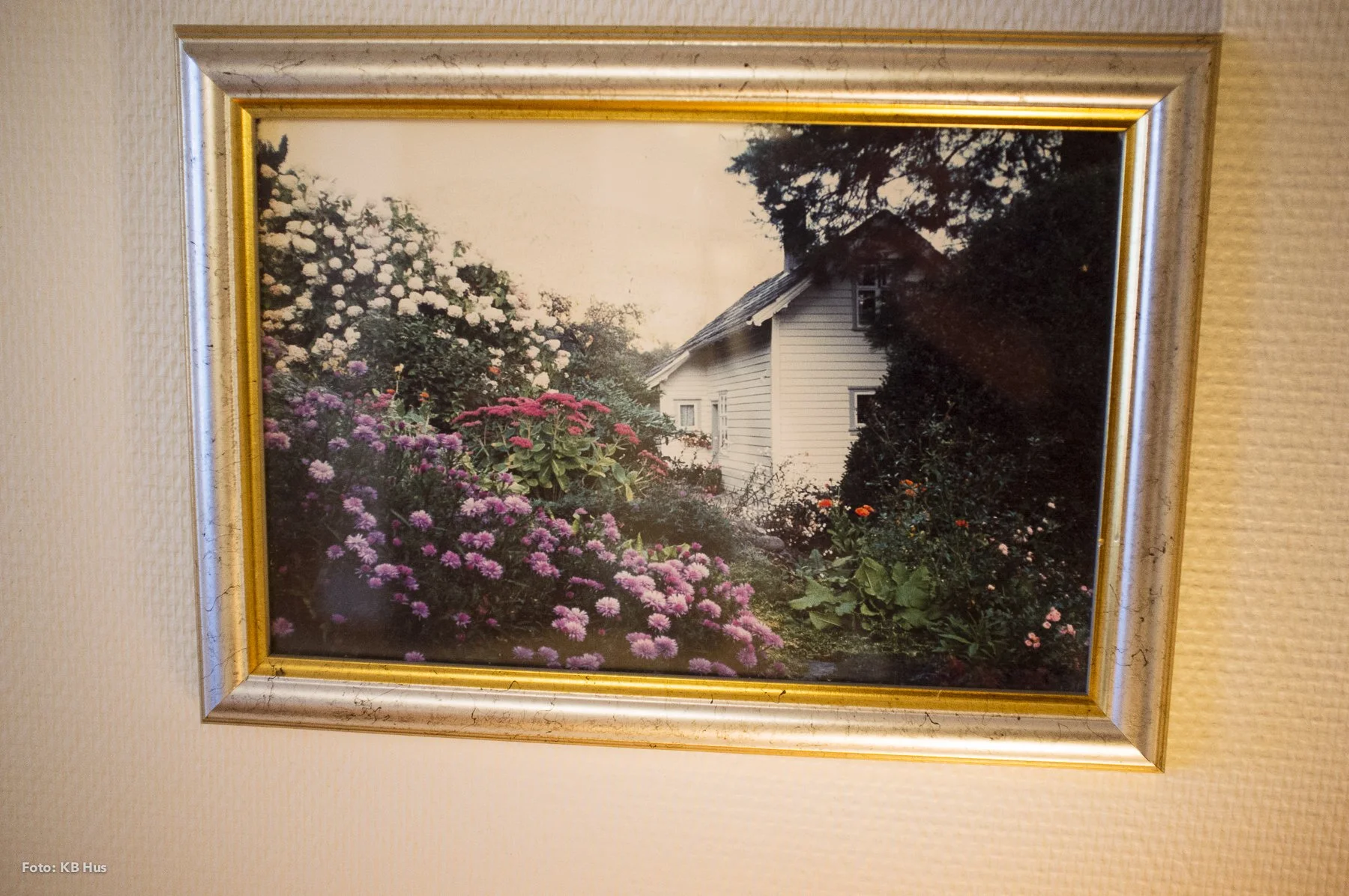 – Det var ein trist og vemodig dag då eg flytta, seier Solveig ettertenksamt. Men eg hadde god hjelp og det gjekk fort for seg. Ho kjenner enno på lengselen etter huset sitt og hagen med alle blomane, og viser oss eit vakkert bilete på veggen som fortel kva ho snakkar om. Er det løye at eg lengtar tilbake, spør ho?